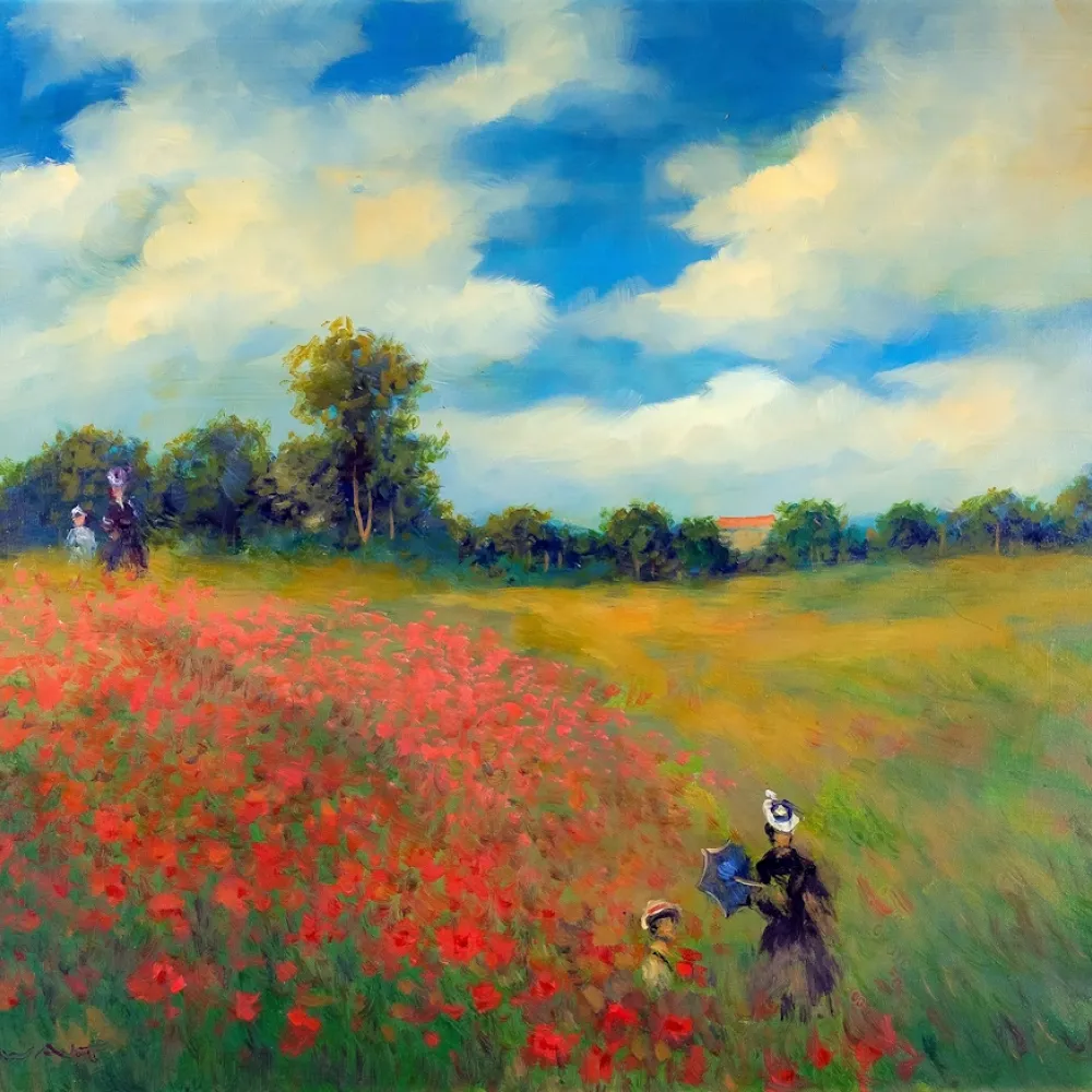 Mohnblumenfeld (Replik auf Claude Monet), um 1970 Ö.a.L. H 60 x B 70 cm verdeckt signiert – Sammlung Weich – Foto Justynowicz