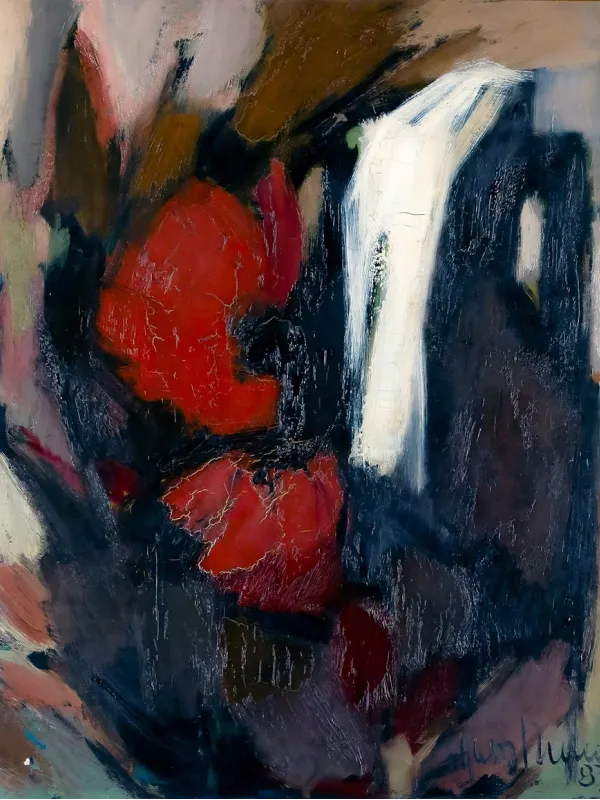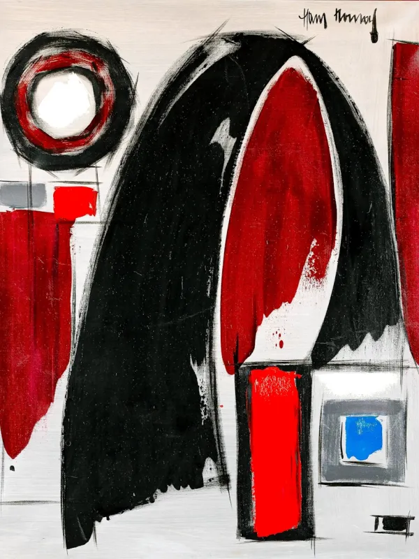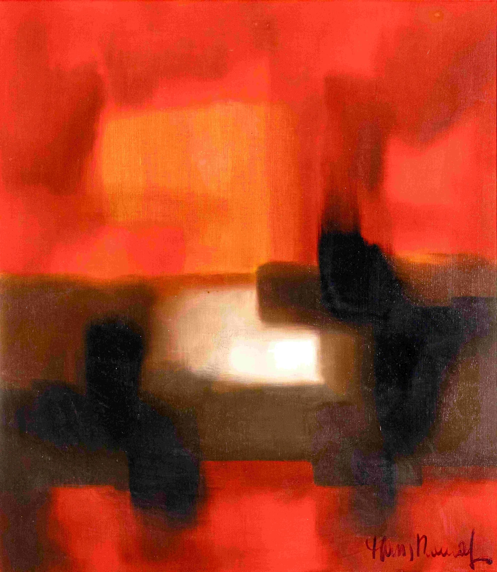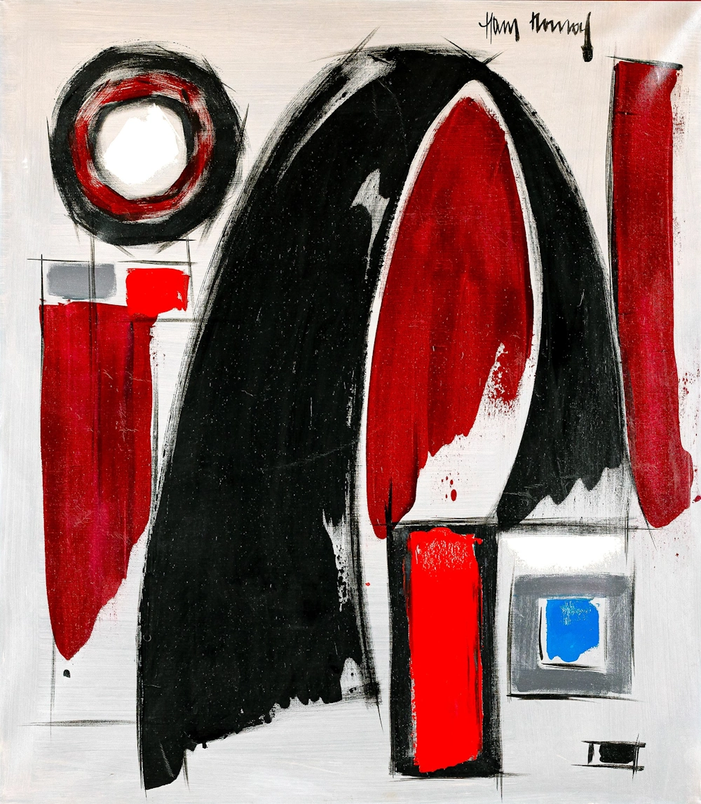 Komposition in Schwarz u. Rot, um 1988. Ö.a.L. H 70 x 60 cm – Sammlung Weich – Foto Justynowicz
