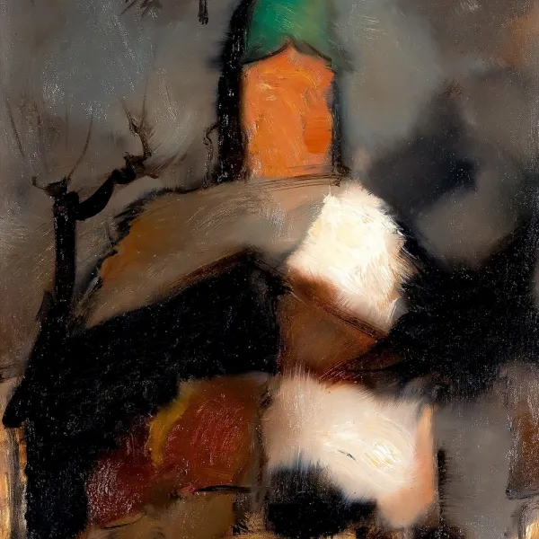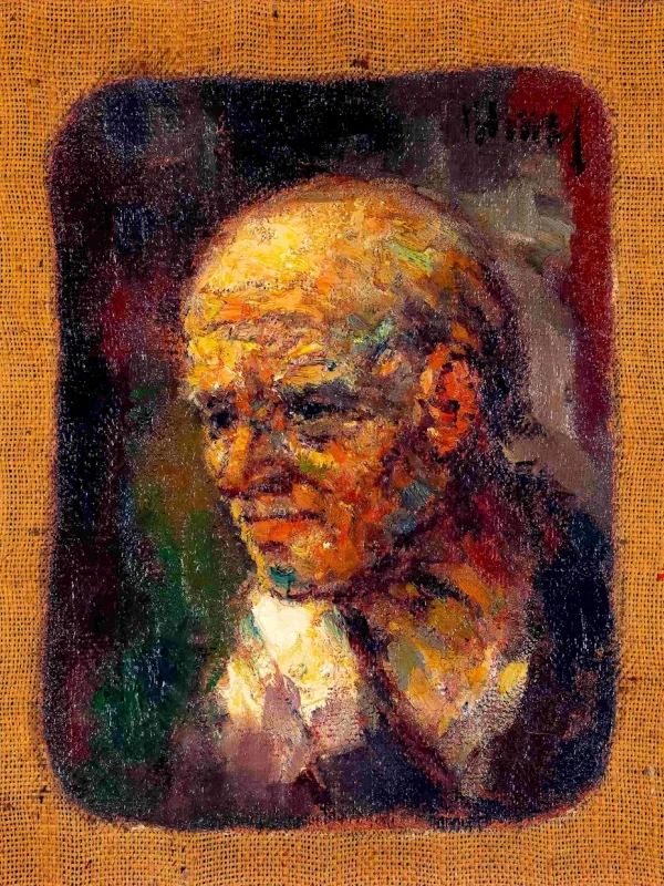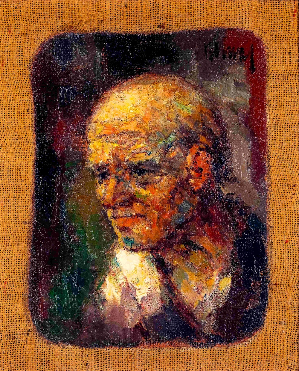Ohne Titel (Porträt eines Mannes), um 1959. Öl auf Sackleinen. H 60 x B 50 cm. Sammlung Weich –