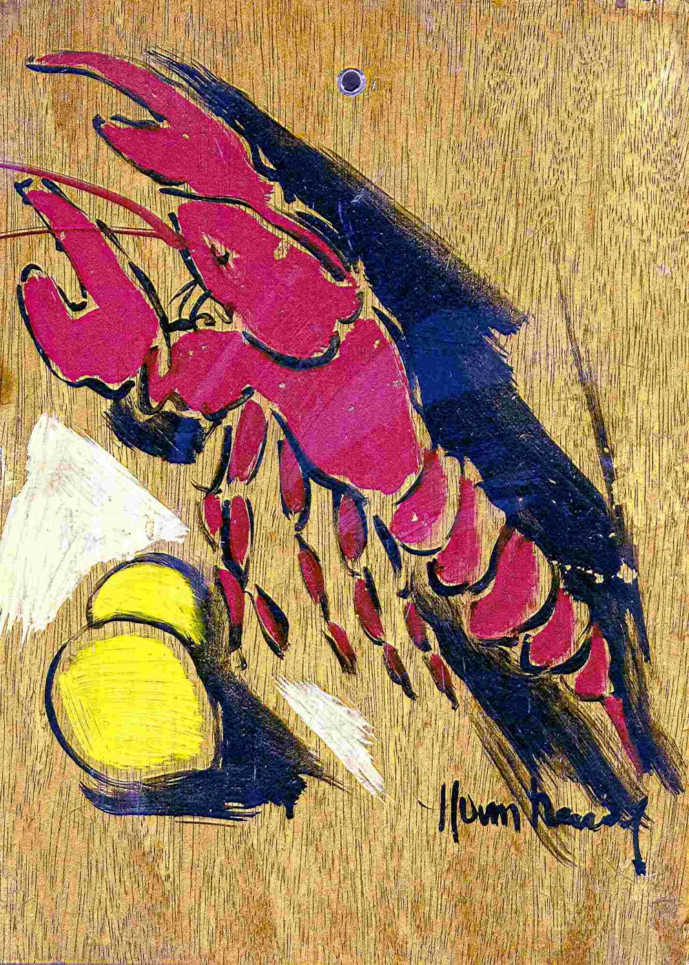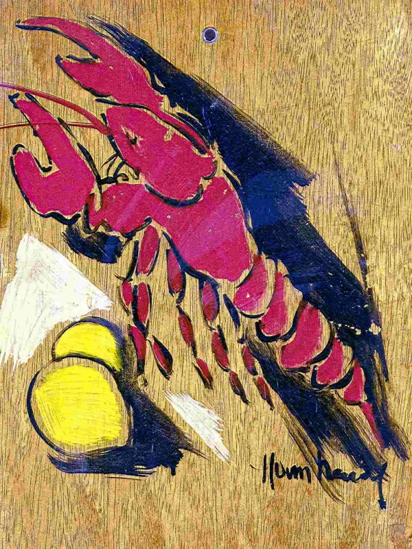 Speisekarte 3 vom Restaurant Samberger, um 1976. Öl auf Holz, lasiert – H 45 x B 20 cm – Sammlung Weich – Foto Justynowicz