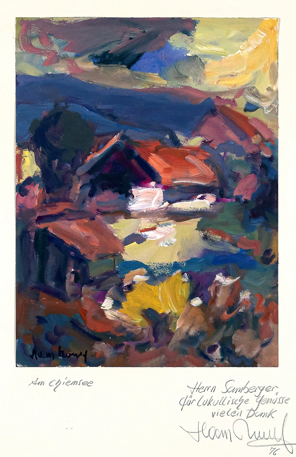 Am Chiemsee (Restaurant Samberger), um 1976. Öl auf Karton. H 40 x B 30 cm – Sammlung Weich – Foto Justynowicz
