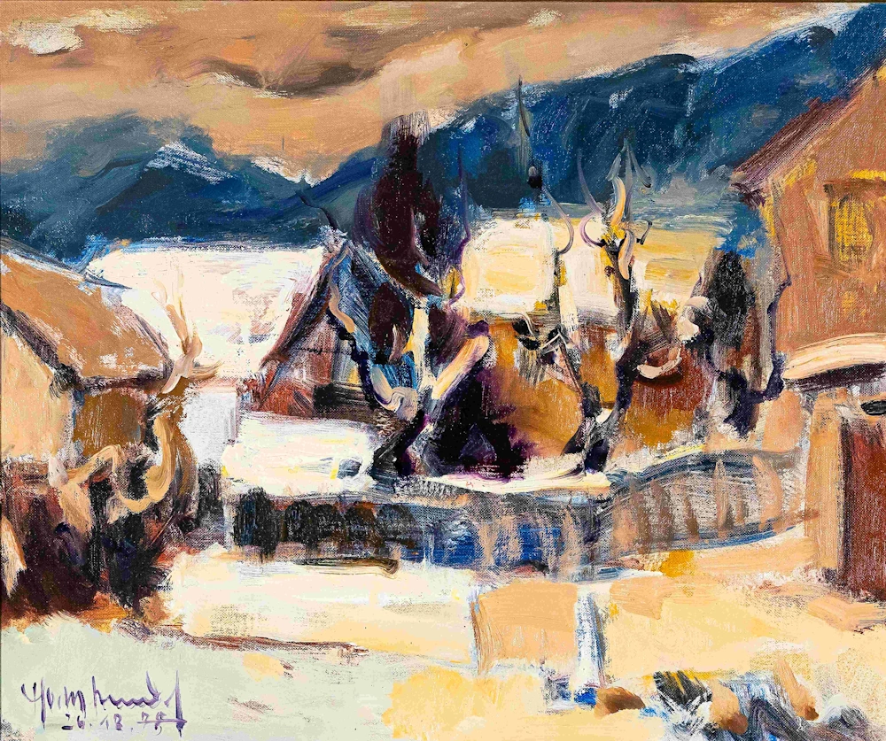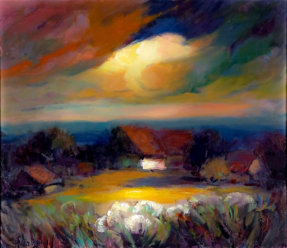 Dorf im Nebel, um 1975. Ö.a.L. H 80 x B 80 cm. Sammlung Weich – Foto Justynowicz