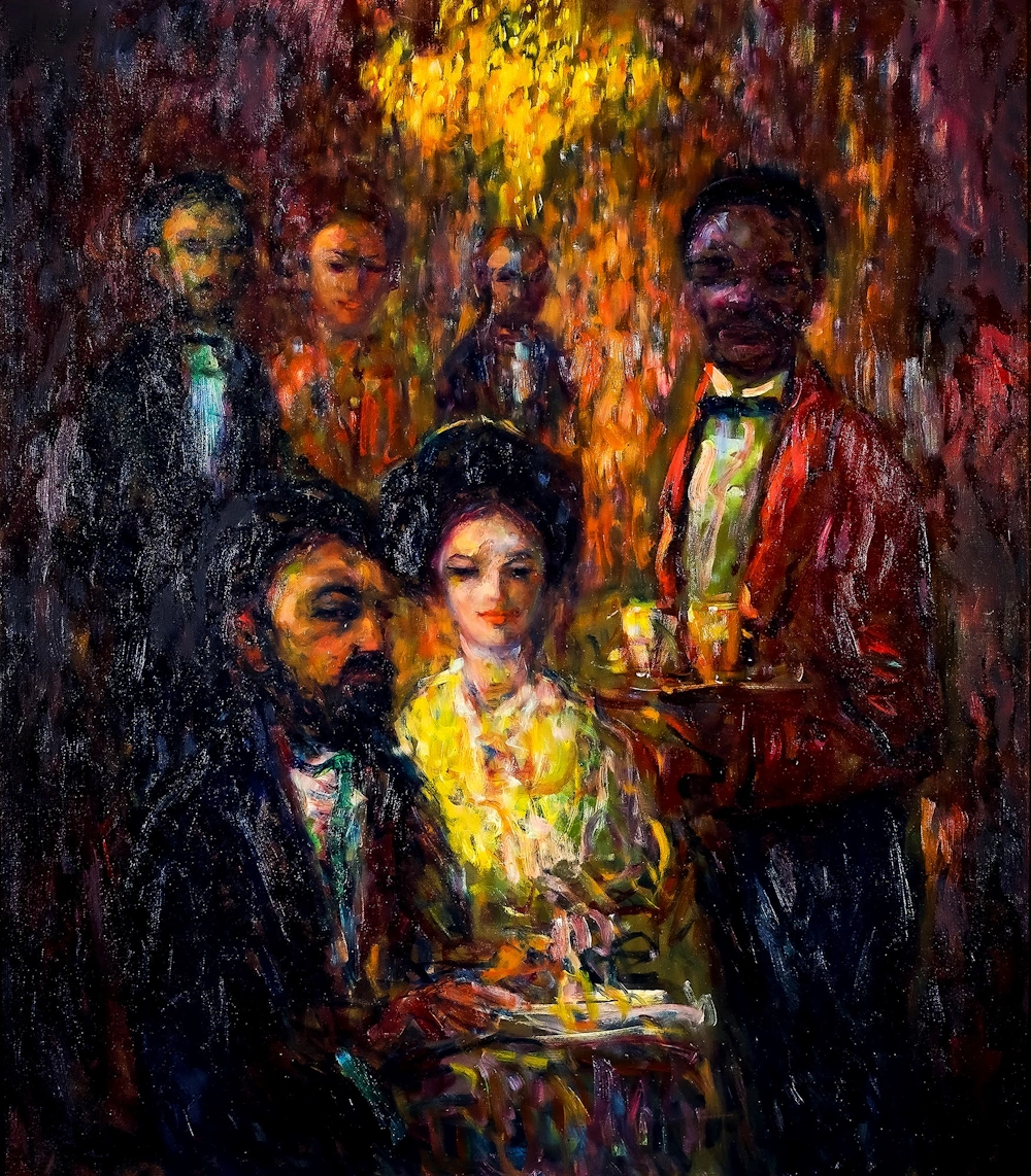 Caffeehaus-Szene, um 1970. Öl auf Leinwand – H 80 x B 70 cm – Sammlung Weich – Foto Justynowicz