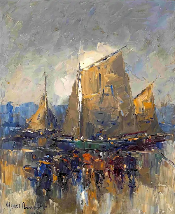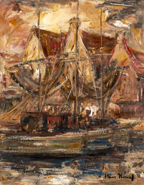 Fischerboote im Hafen, um 1960. Oe.a.L. H50 x B40cm Sammlung Weich – Foto Justynowicz